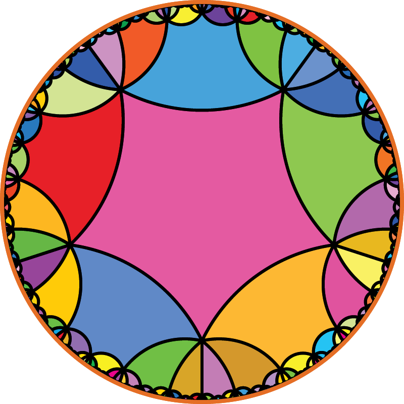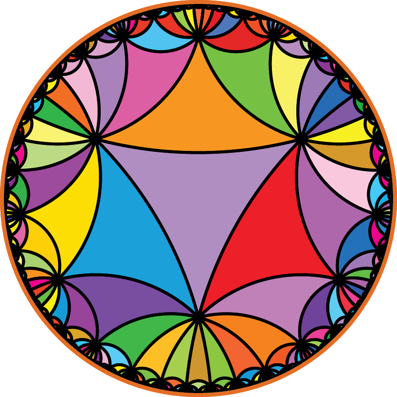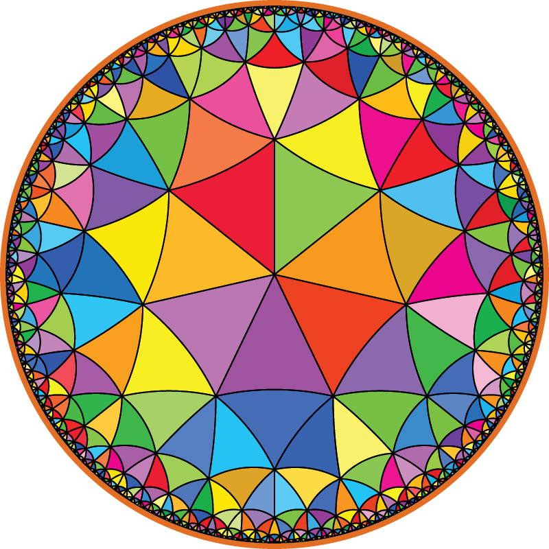 Существует замощение одинаковыми правильными $n$-угольниками, сходящимися по $k$ в каждой вершине, если $\frac1n+\frac1k\lt\frac12$.