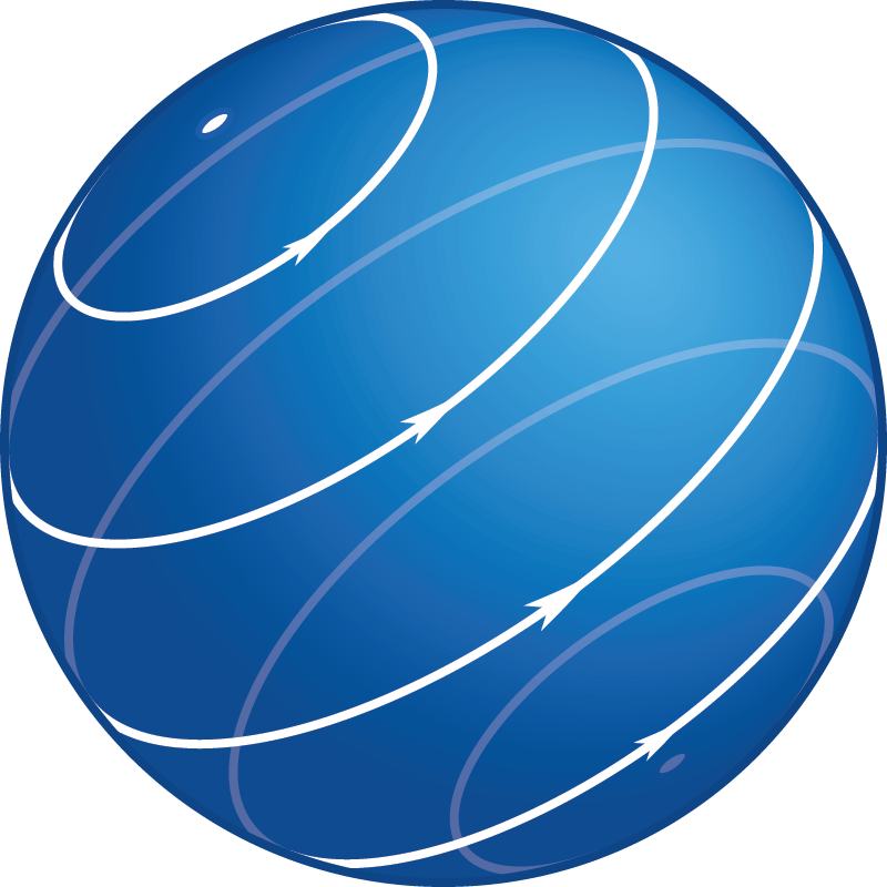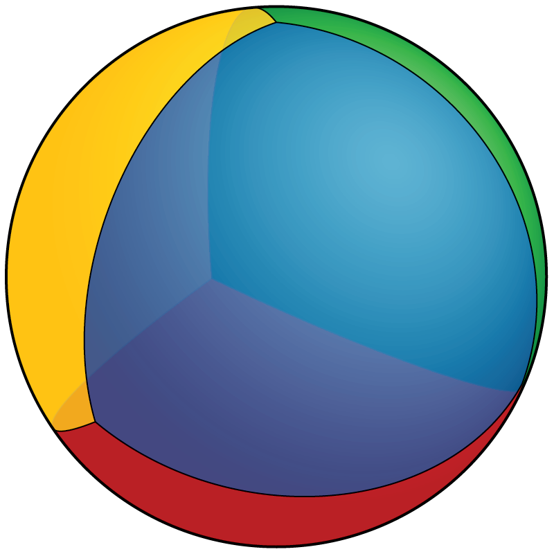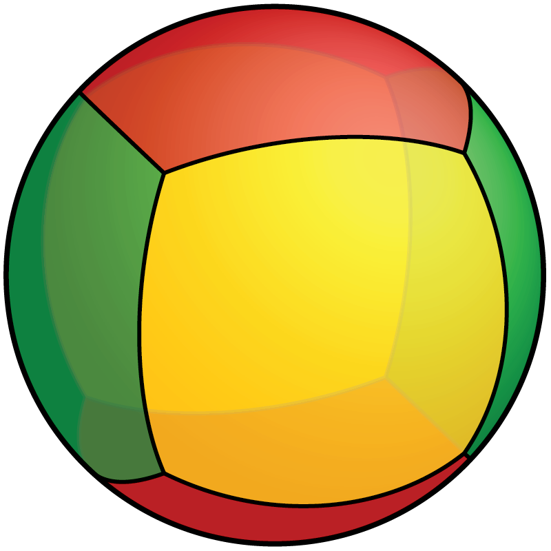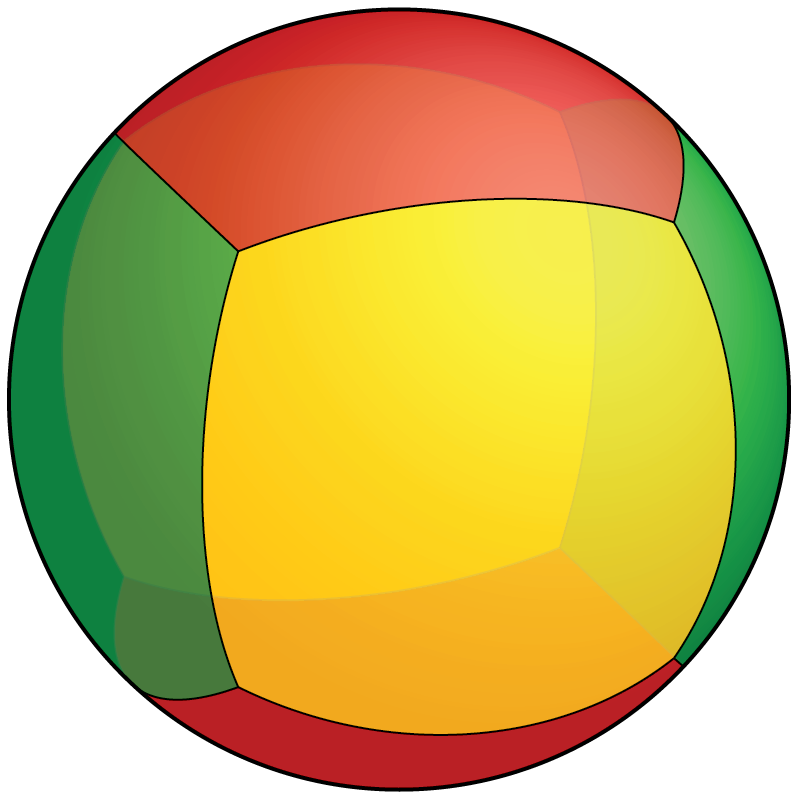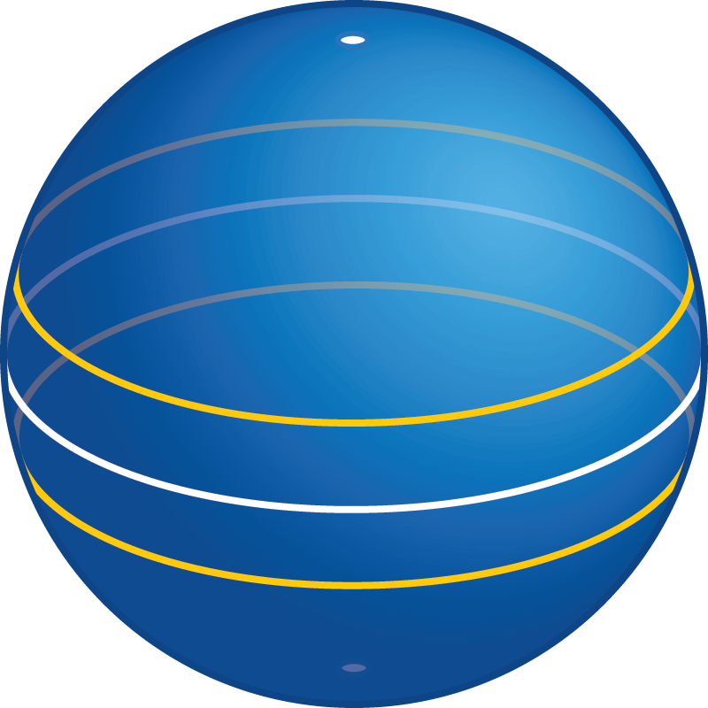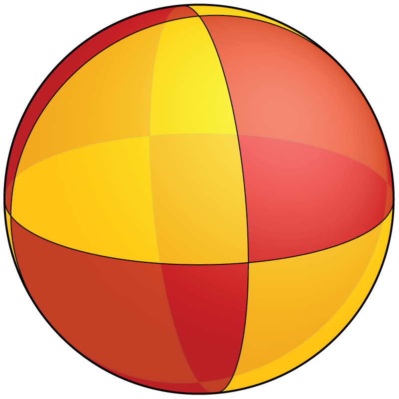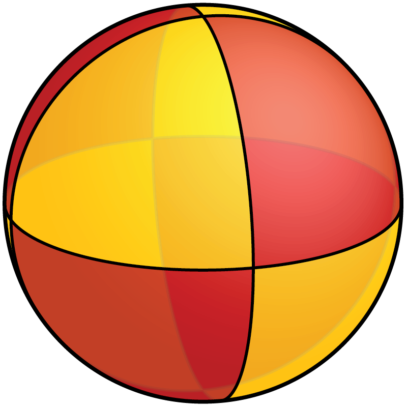 Точки — точки на единичной сфере, прямые — большие круги (сечения сферы плоскостями, проходящими через центр).