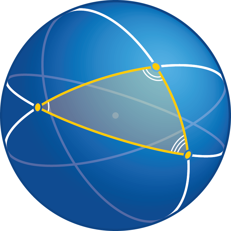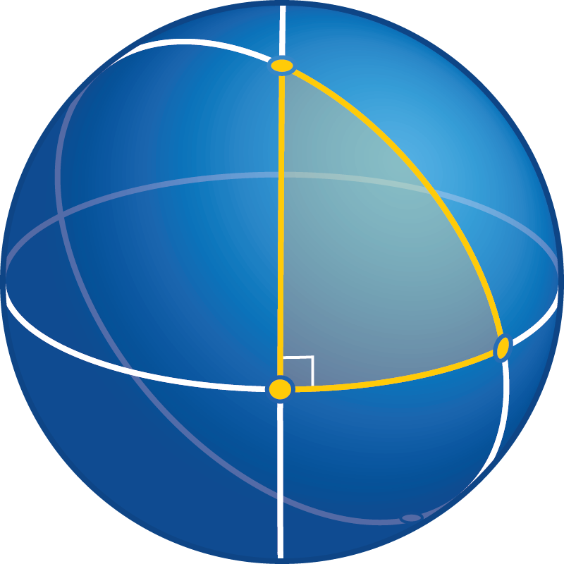 Расстояния — обычные длины (по сфере) отрезков прямых. Углы — обычные углы между дугами окружностей.