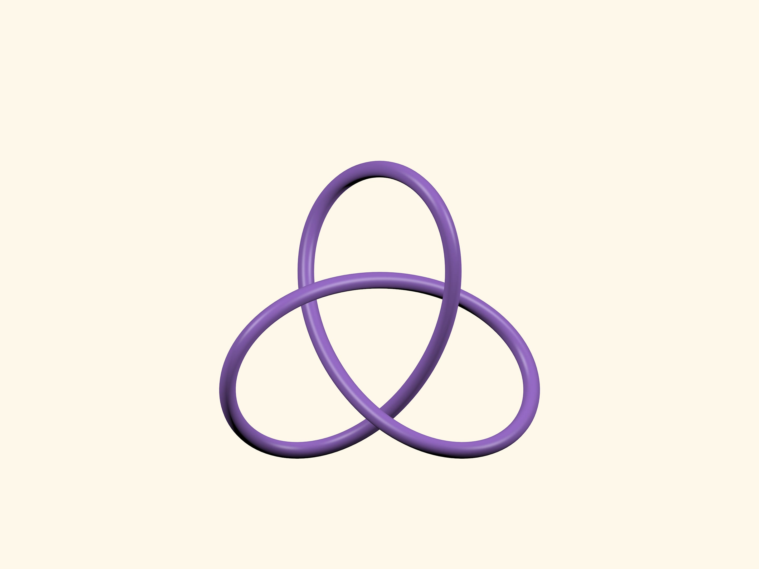 В теории узлов, в произведениях искусства используются плоские диаграммы узлов. Мы привыкли к плоскому изображению трилистника, в трёхмерии эта конструкция может выглядеть по-разному, например так.